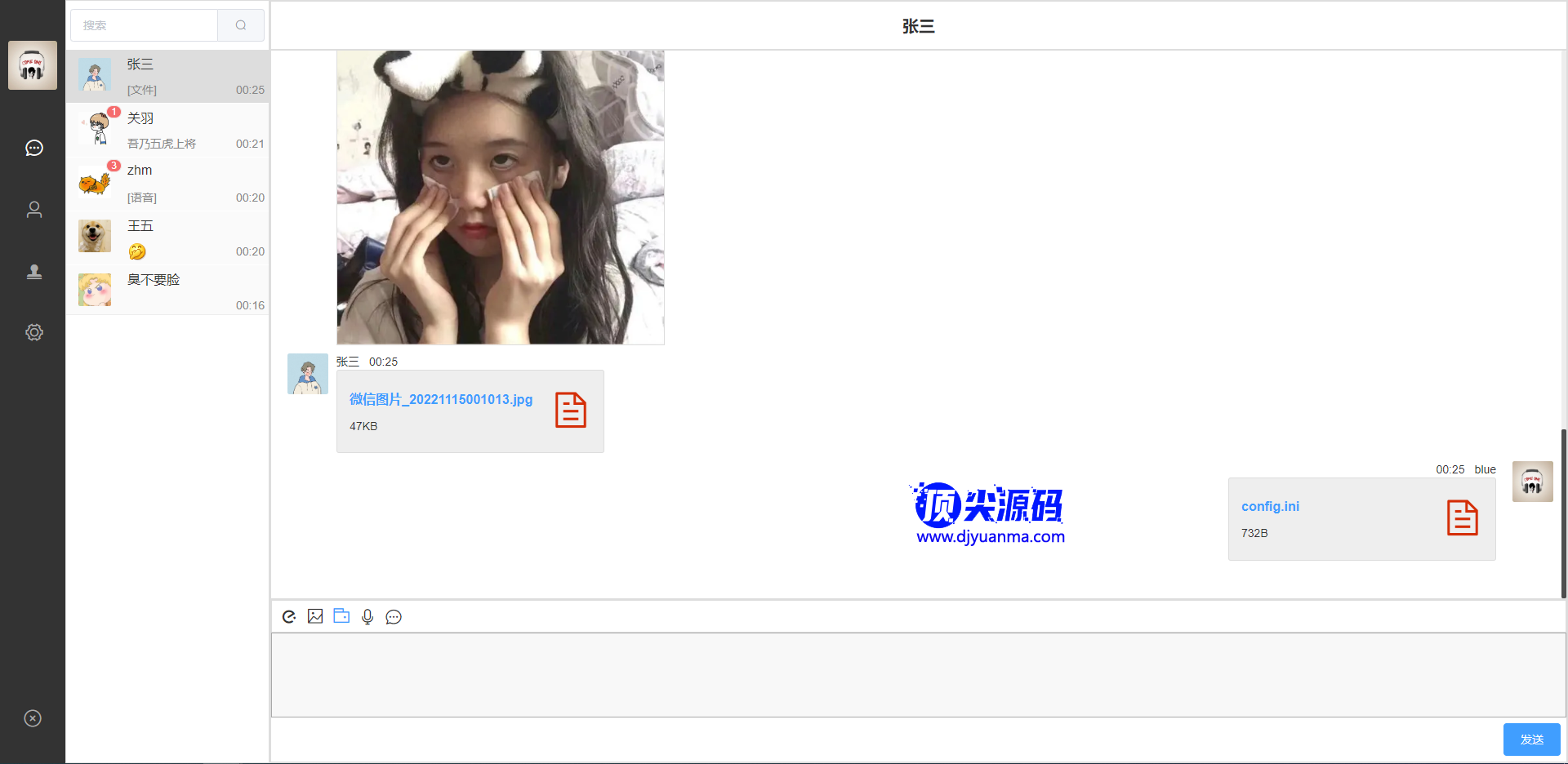 一款开源的实时聊天程序源码,springboot+netty的后端,前端web用的vue写的,跟我们用的微信聊天工具差不多,该有的功能都有,发文件图片表情包这些,还有就是开视频等等的功能均正常使用。测试环境node:v14.16.0,jdk1.8的,maven:3.6.3,数据库用的mysql的5.7版本,运行sql脚本(脚本在im-platfrom的resources/db目录),安装redis和minio。h5的话我们要用到HBuilderX,把im-uniapp导入进去打包即可!