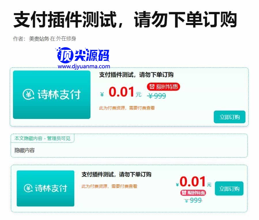 一款WordPress的支付插件,支持付费阅读、付费下载功能,界面整洁美观