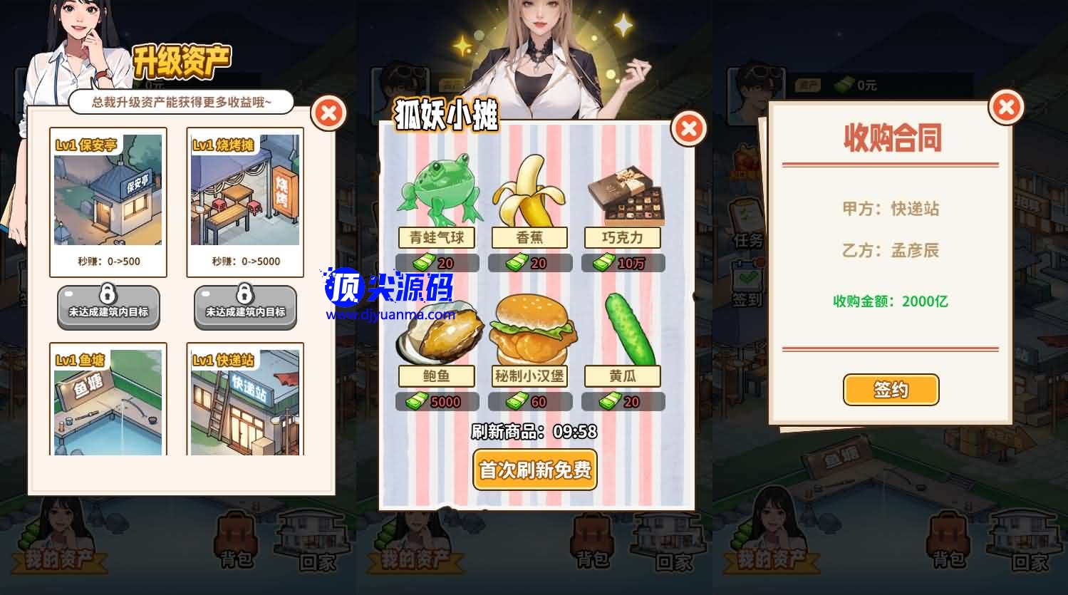 三网H5小游戏【白手起家模拟器】Linux手工服务端+安卓