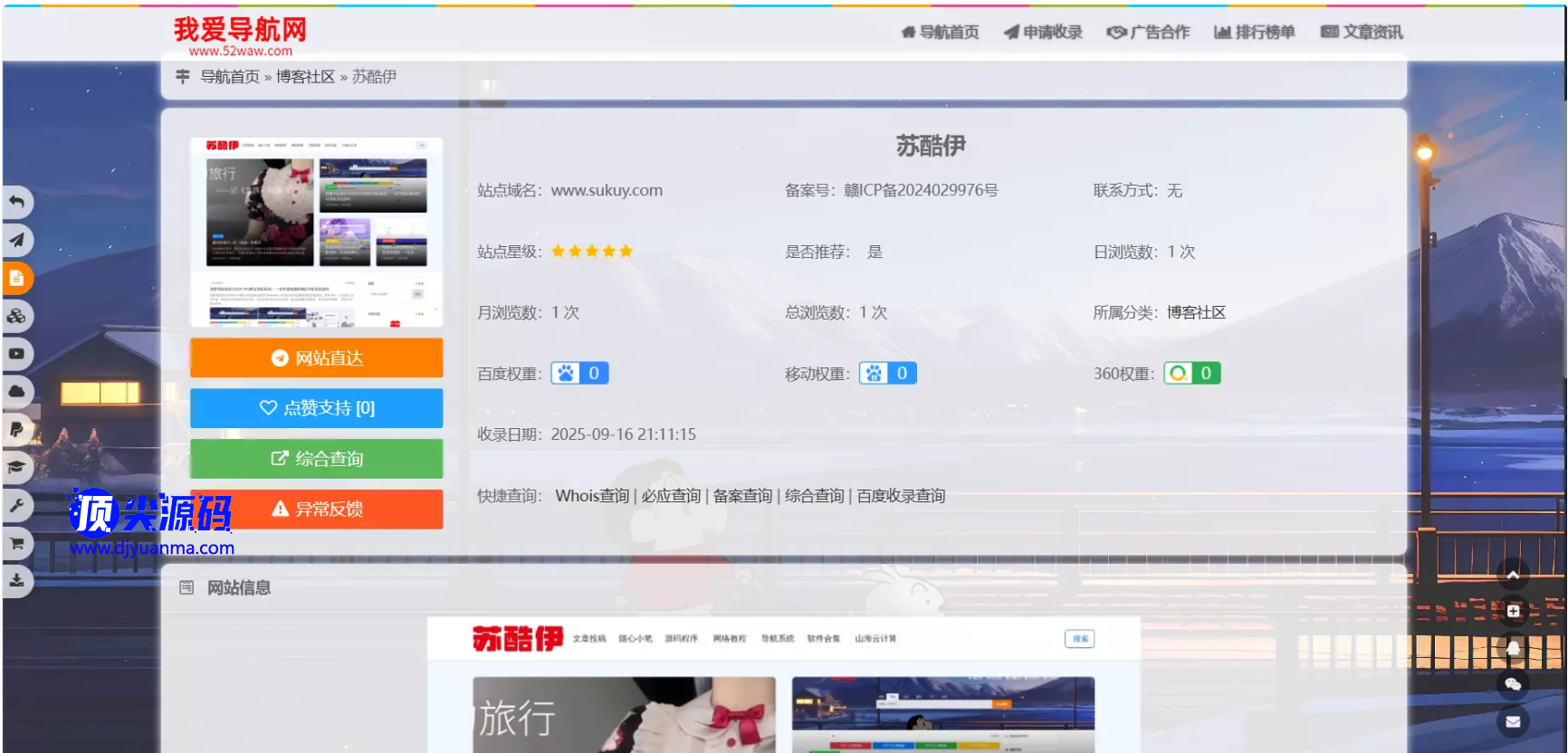 我爱导航(52DH Pro)网址导航系统是由苏酷伊二次开发并免费发布的开源免费的网址导航系统