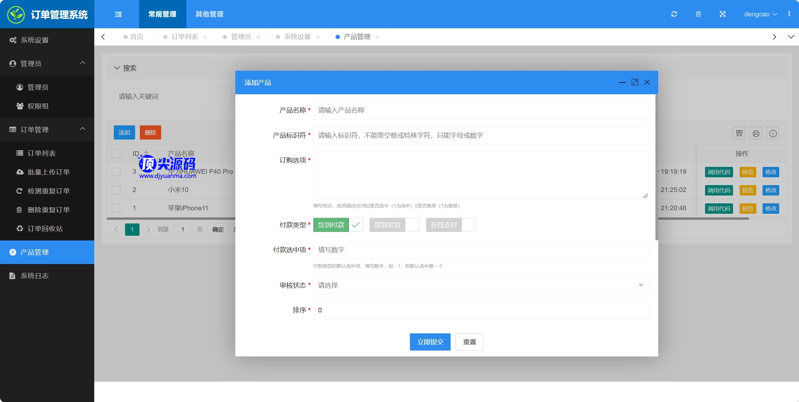 客户下单时给管理员发邮件(短信)提醒等功能,内置灵活的查看订单权限设置机制。系统特点:易上手,零门槛,拿来即用