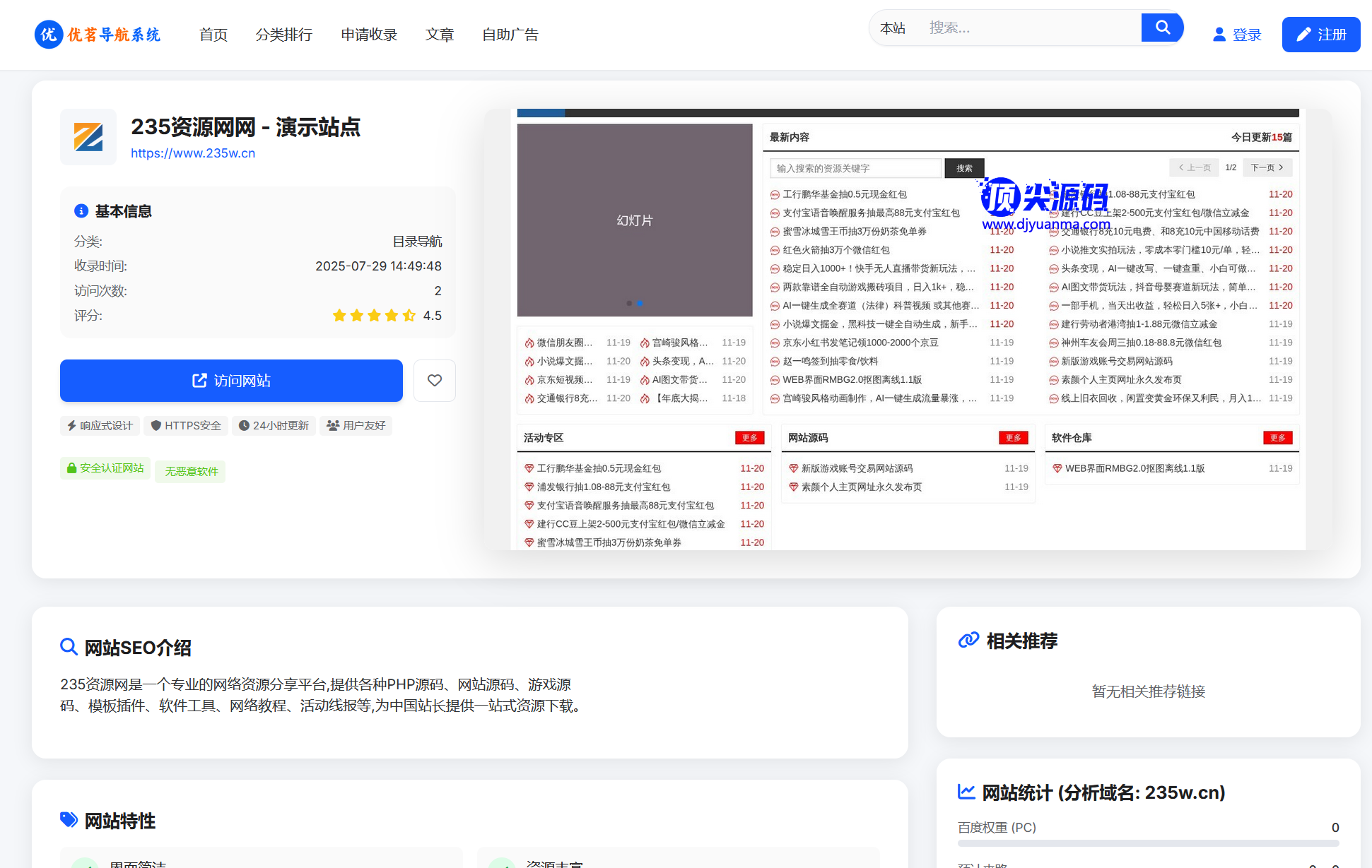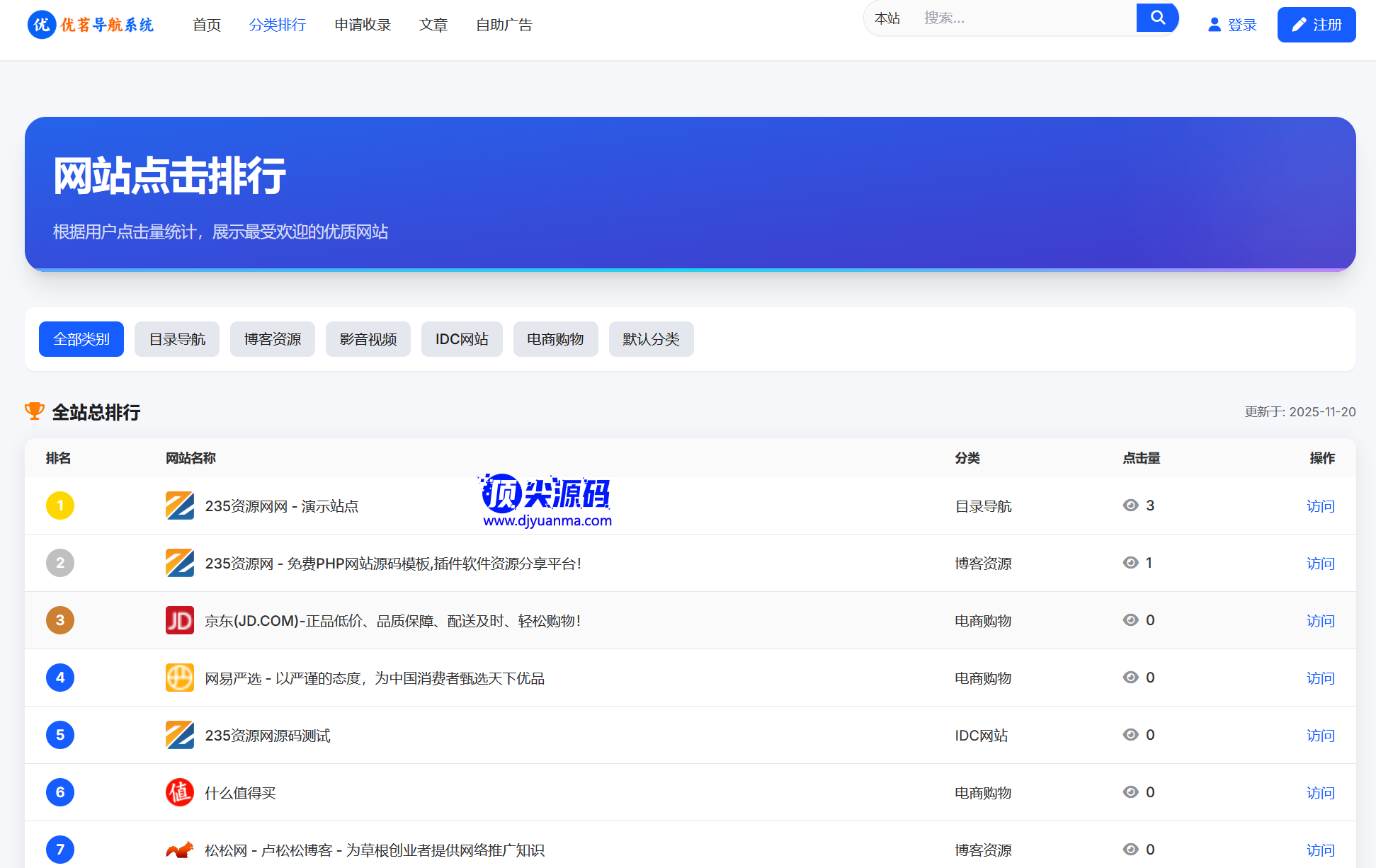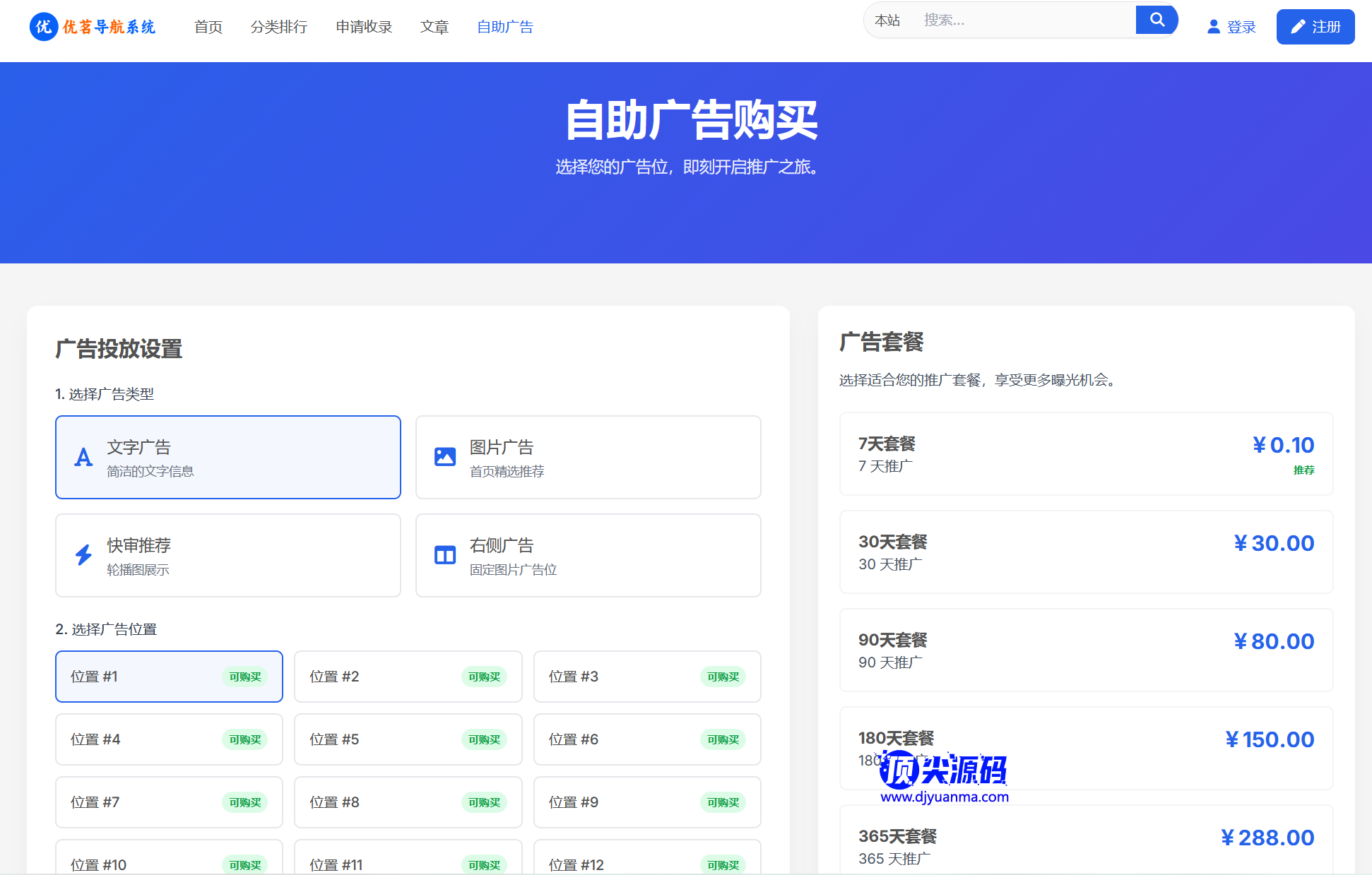 最新优茗导航系统源码 全开源版本 精美 UI 带后台 附教程 亲测可用 支付自动购买广告位