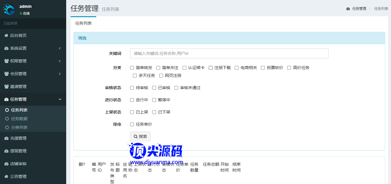开发悬赏任务兼职系统运营版源...