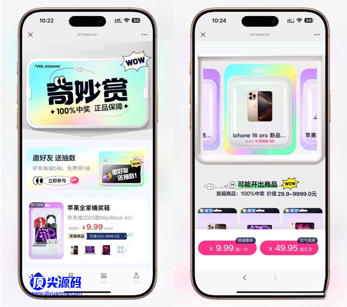 盲盒核心玩法: 实现抽奖、开盒、奖品展示(实物/虚拟)等核心盲盒功能逻辑。