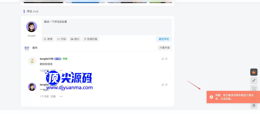 一款子比主题的文章/帖子评论区拉黑插件,别人写了文章发布,有人乱评论,拉黑之后就不可以评论了,还是比较实用的一款插件,喜欢的自行部署吧!