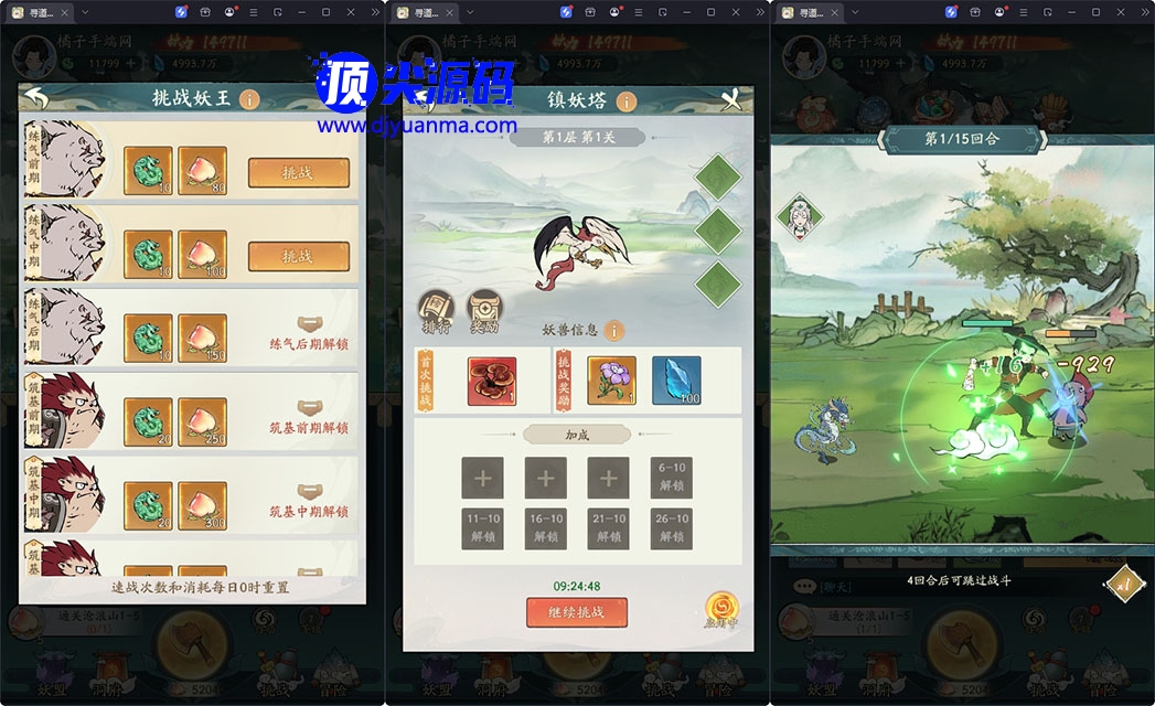 2.灵兽、精怪、灵脉、法宝、坐骑全部1级开放!