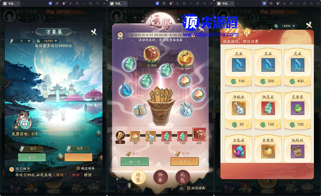 3.更新2个新灵兽,更新全部精怪,更新全皮肤礼包,添加仙友礼包!