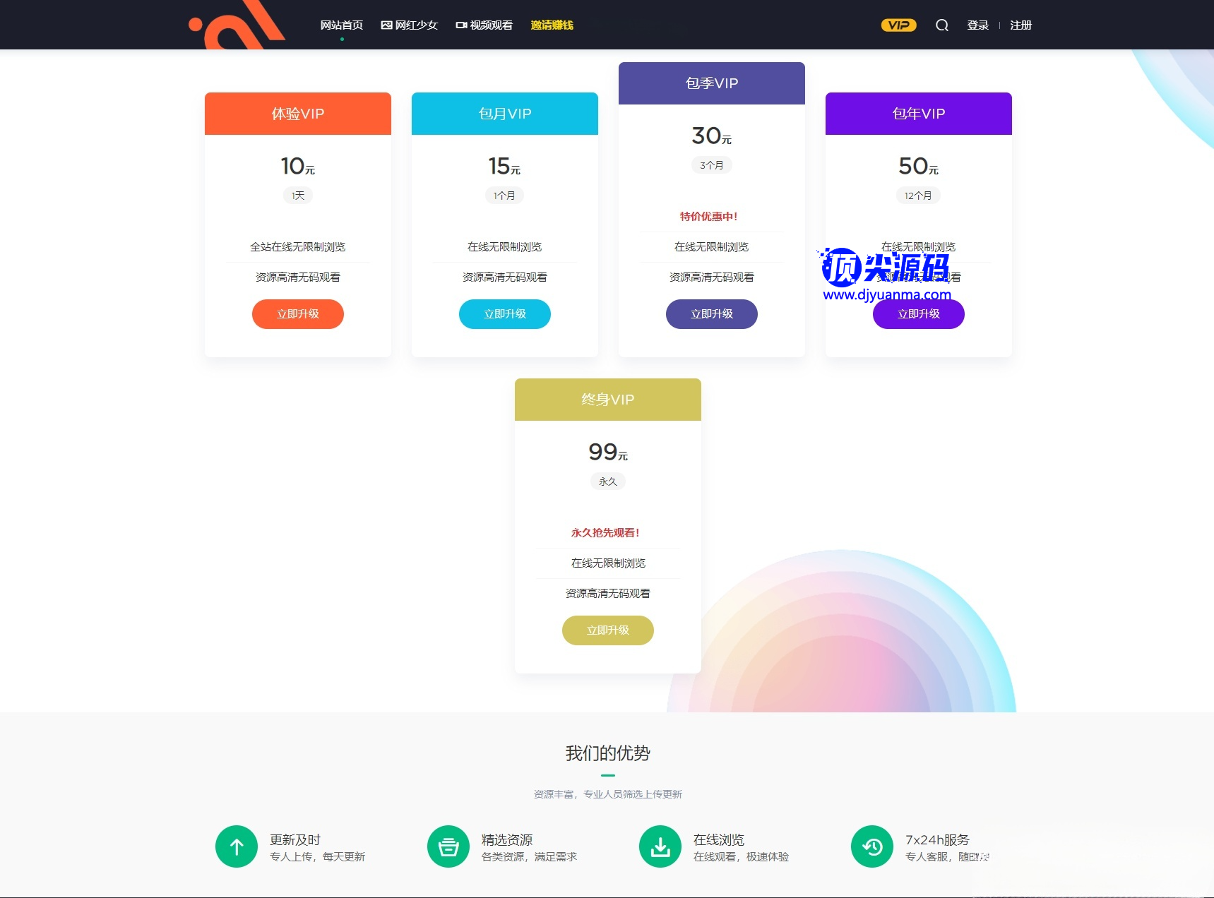 WordPress内核,已经集成好了模板,而且这模板功能非常强大,专门用于下载站的,会员中心和开通会员这些的都是有的。