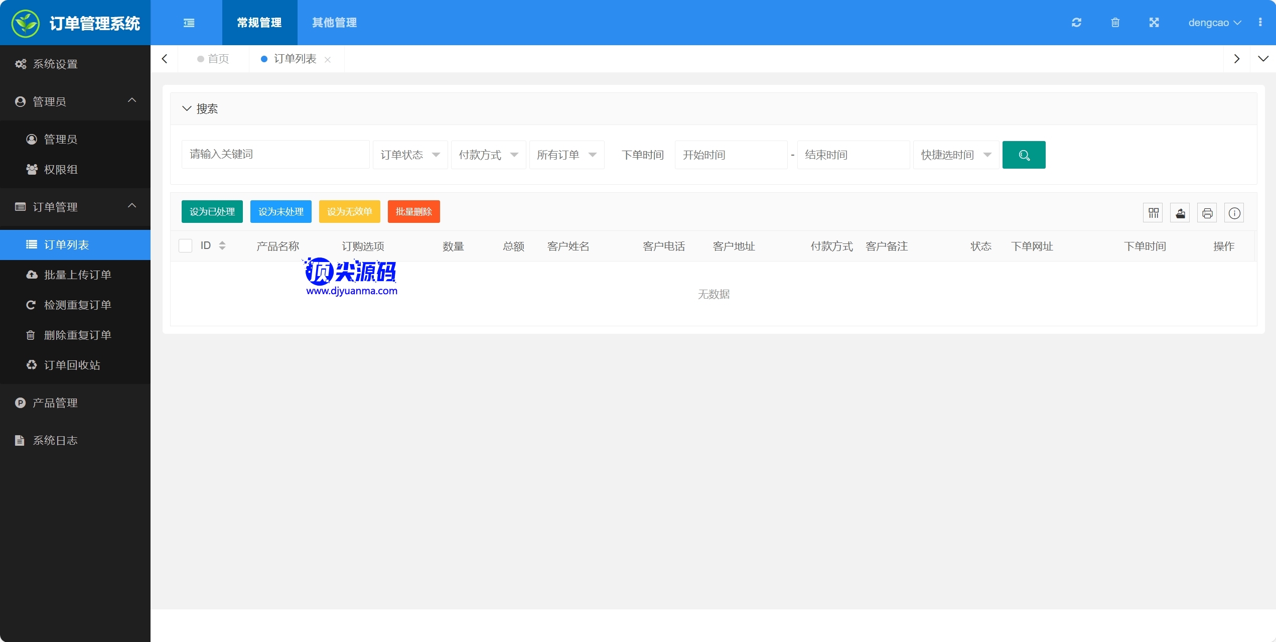 caozha-order 是一个通用的广告(推广)竞价页订单管理系统,基于开源的 caozha-admin 开发,支持订单管理、订单回收站、