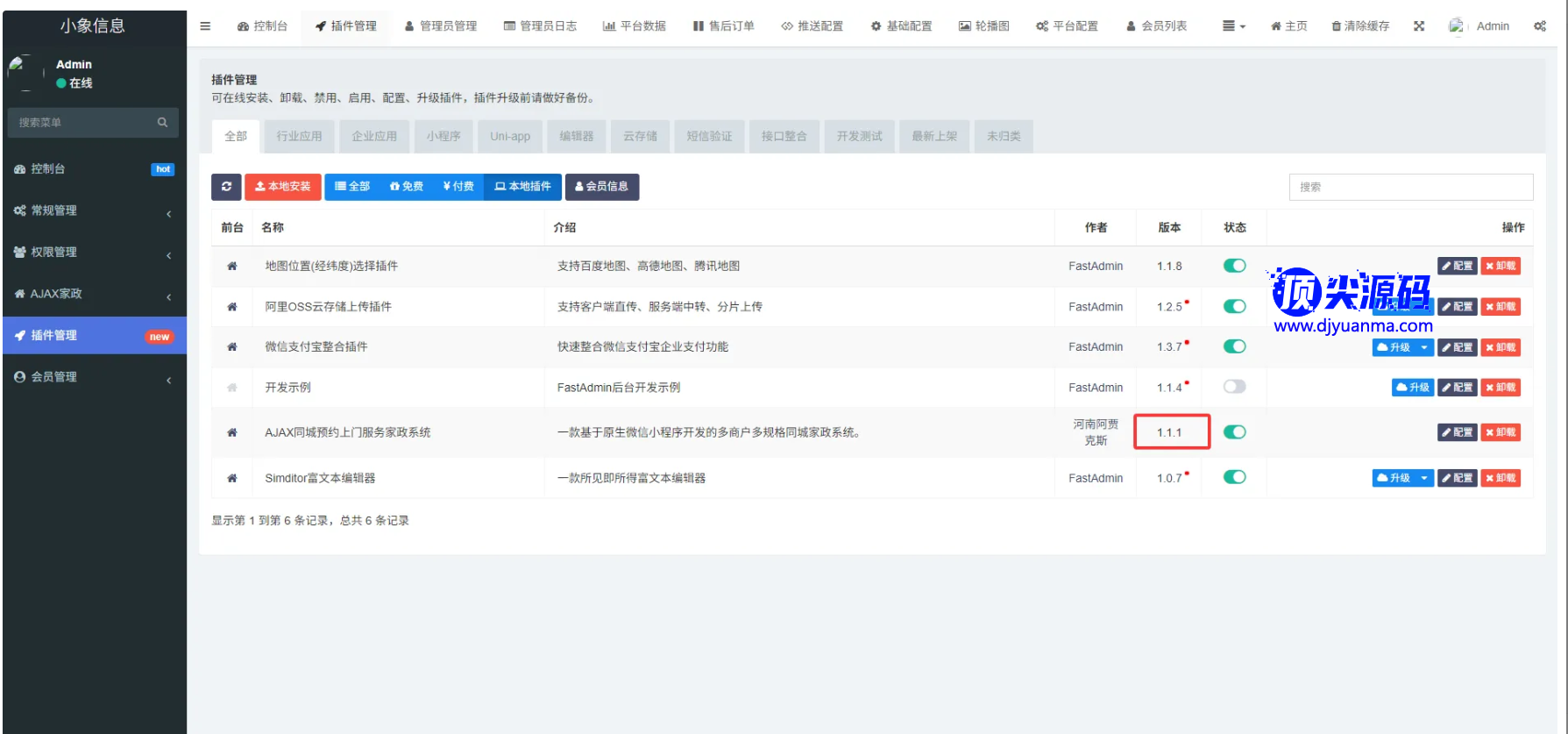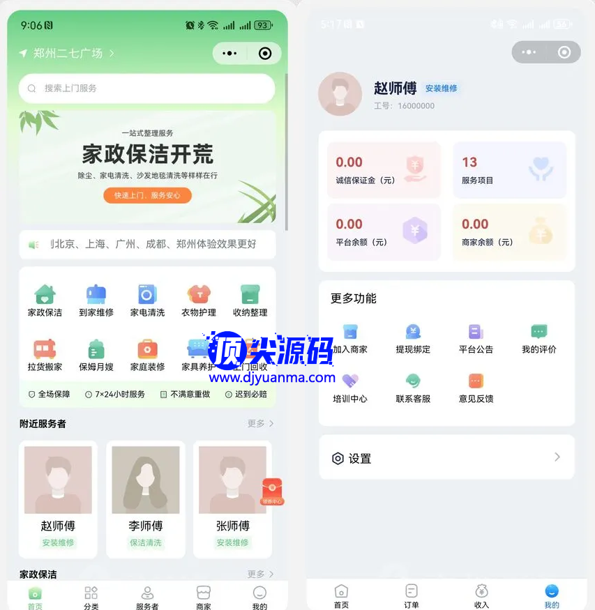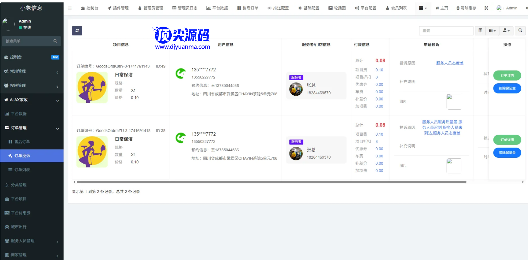 基于FastAdmin和原生微信小程序开发的一款同城预约、上门服务、到店核销家政系统,用户端、服务端(高级授权)、门店端(高级授权)各端相互依赖又相互独立,支持选择项目、选择服务人员、选择门店多种下单方式,支持上门服务和到店核销两种服务方式,支持自营和多商家联营(高级授权)两种运营模式,同时支持多城市并且设置每个城市专属服务项目。